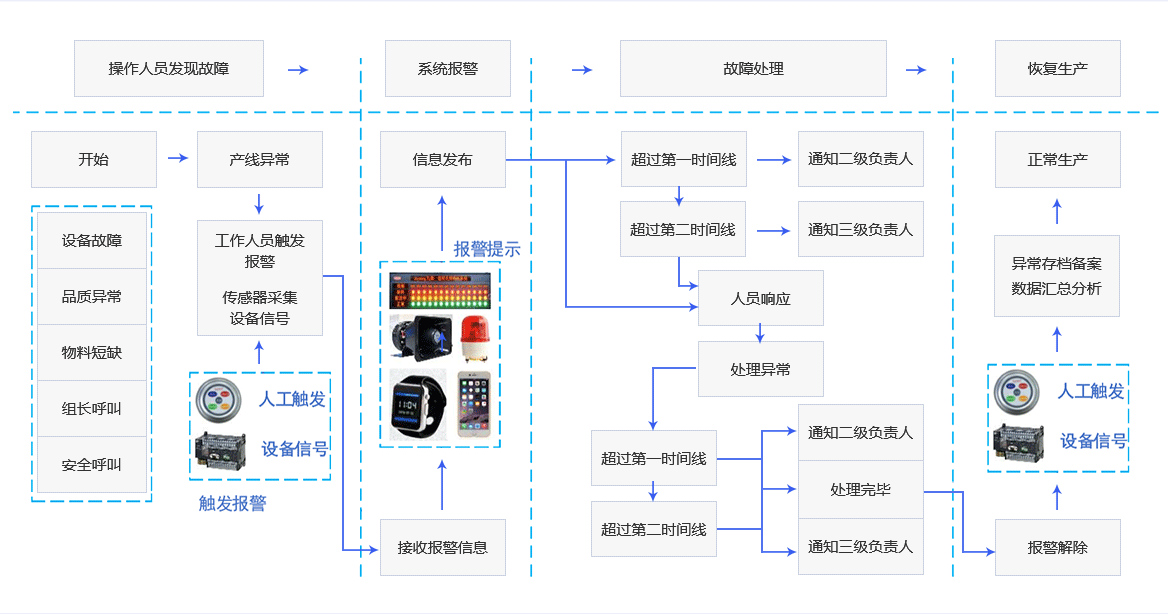 記錄每次異常報警的種類、響應時間和處理用時,為生產管理的分析和后期的持續(xù)改善提供數(shù)據(jù)依據(jù)。