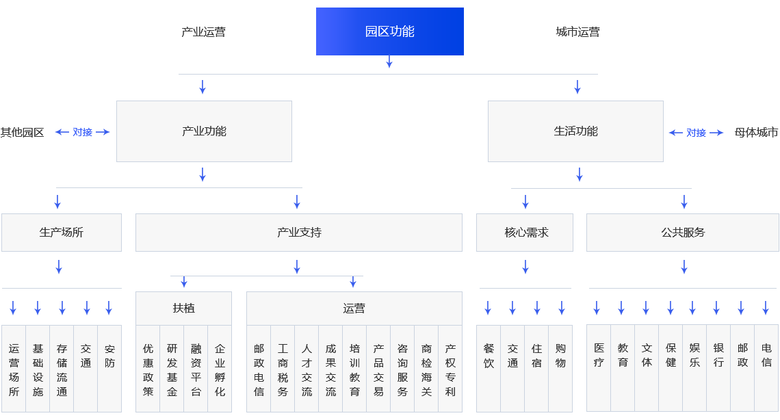未來園區(qū)的功能將從傳統(tǒng)的招商引資和管理職能向全方位的產(chǎn)業(yè)及城市綜合化服務(wù)轉(zhuǎn)型,并逐漸建立園區(qū)內(nèi)外之間的整合優(yōu)勢(shì)