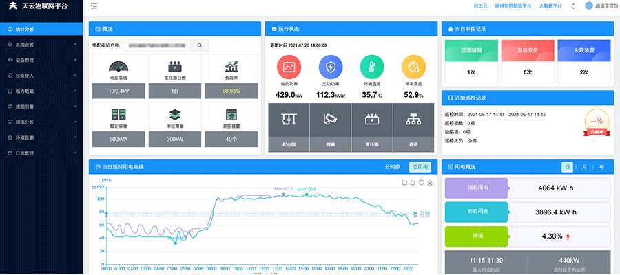 隨著國(guó)家電網(wǎng)改革政策的逐步推進(jìn)和落實(shí),普通線下運(yùn)維模式已無法滿足市場(chǎng)需求,迫切需要配套智能化線上運(yùn)維管理和服務(wù)平臺(tái),天云聚合變電所運(yùn)維云平臺(tái)根據(jù)市場(chǎng)需求反饋,運(yùn)用互聯(lián)網(wǎng)和大數(shù)據(jù)技術(shù),為電力運(yùn)維公司提供配套線上運(yùn)維服務(wù)。該平臺(tái)作為連接運(yùn)維單位和用電企業(yè)的紐帶,全方位監(jiān)視變配電系統(tǒng)的運(yùn)行狀態(tài)和電量數(shù)據(jù),為客戶提供更好的運(yùn)維服務(wù),平臺(tái)提供運(yùn)行環(huán)境法監(jiān)測(cè)、電力數(shù)據(jù)監(jiān)測(cè)、電能質(zhì)量分析、消防安保監(jiān)測(cè)、異常預(yù)警、事故報(bào)警和事件記錄、運(yùn)維巡檢派單等功能,并支持多平臺(tái)、多終端數(shù)據(jù)訪問。